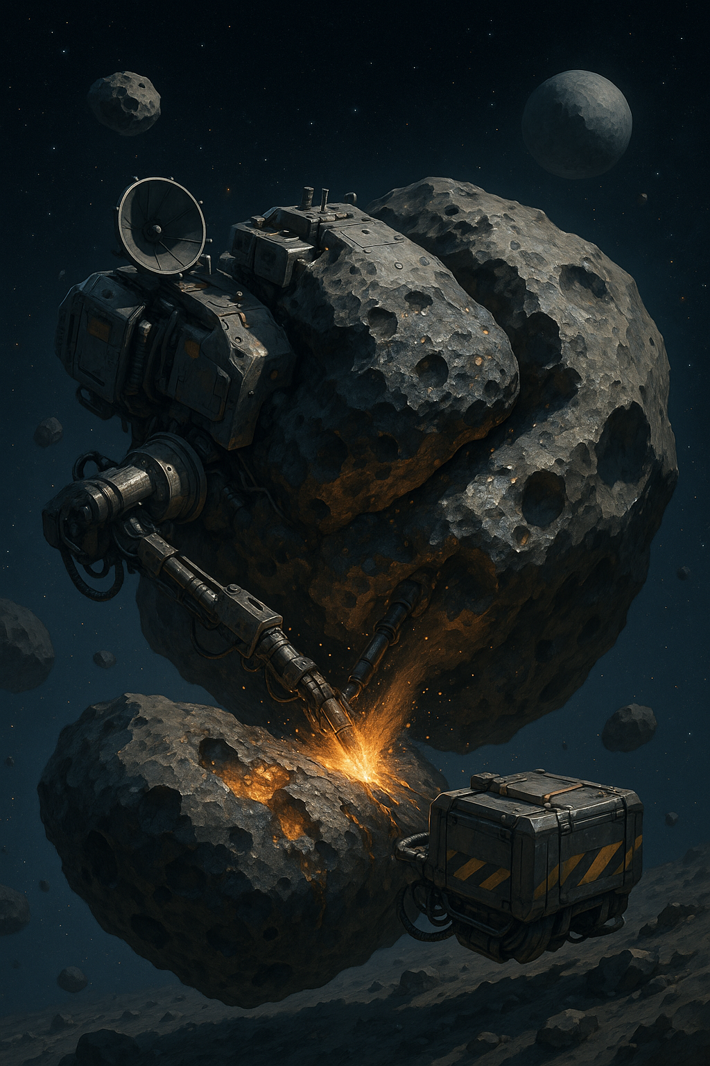 광물을 바로 지구로 가져오는 것은 비용과 위험이 높기 때문에, 현장에서 정제 후 저장하거나 궤도상 우주 정거장에서 처리하는 구조가 필요합니다.